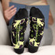 Stylish socks printed with an ethnic pattern of shapes, stripes and Gecko lizards.