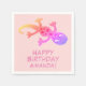 Gecko birthday napkins for kids. The napkins have a cute gecko. Rainbow gecko is especially great for girls. The background is pink. Personalizable napkins with a Happy Birthday text and a child`s name. Easily personalize the napkins. The text is in white color. Great for a girl birthday party.