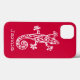 Keep your device protected with this stylized climbing gecko ipod case. Customize with the name of your choice. Currently reads Jamie. Uniquely white graphic gecko art on a red background designed by Sarah Trett.