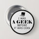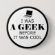 I was a geek before it was cool. If this statement is something you can relate to, this button is for you! The background colors may be changed to give this design more of a personal touch.