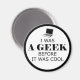I was a geek before it was cool. If this statement is something you can relate to, this magnet is for you! The background colors may be changed to give this design more of a personal touch.