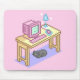 This cute design features pixel art of a desk and computer. There is happy face on the computer monitor, and a cat sitting under the desk too. I've used a pastel pink and yellow colour scheme, and isometric layout, to give the art a 90s computer game aesthetic. 💻 Artwork by JessicaAmber. 💻 For more kawaii pixel art, visit my store zazzle.com/jessicaamberartist 💻 For custom orders, message me on Zazzle
