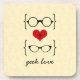 Cute and whimsical Geeky Glasses Coasters featuring a red heart flanked by two pairs of geeky eyeglasses, a manly pair and a girly pair. This sweet coaster set will keep your furniture neat and add nerdy flair to any decor! Easy to customize, simply add the personalized text of your choosing. Click "Customize It" to find more personalization options.