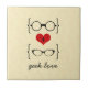 Cute and whimsical Geeky Glasses Tile featuring a red heart flanked by two pairs of geeky eyeglasses, a manly pair and a girly pair. This sweet tile will add nerdy flair to any decor! Easy to customize, simply add the personalized text of your choosing. Click "Customize It" to find more personalization options.
