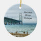 Christmas ornament featuring some Canadian Geese roam the beach on a foggy and rainy day at the beautiful Mackinac Bridge from the Lake Huron side. This is located in Mackinaw City Michigan. Looking for more prints or products? Feel free to visit my store: http://www.zazzle.com/timelessmomentsphtgy