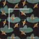 Deco stylized flying geese in clouds over ponds fabric for sewing. By @trforsman. Collection “Deco Geese”.