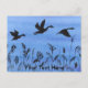 A tiny watercolor and ink landscape of Canada Geese in flight in the evening. Painted for Art-O-Mat.