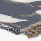 A quality printed throw has its advantages. This is a much finer weave throw than its loopier cousins, and though lighter, it is worth the investment for custom room accessorizing. The back is much prettier than the typical brown, and the fringe on the long sides very vivid, the selvage nicely done. Before photographing, I washed the throw in cold water, delicate, with a thicker woven throw the same size. On tumble dry low, this throw was dry in half the time as the other. This is a very practical quality if you use throws for furniture covers or to wrap up in frequently. The sleekness of the fabric makes it a great layer for accenting or protecting without the feeling of sitting on too much stuff. Perfect for napping or when you feel a light chill coming on. The color printing is beautiful and on this fabric, matched the design and color of my Photoshop image. This is an advantage for blending room fabrics and colors. The fringe on the short sides prints the colors from the design image and therefore varies from the side fringe. I streaked a white fractal line through the plaid pattern to give the illusion of weaving. This printed as crisp as an illusory thread, and put some white in the short side fringe, showing another advantage of print vs loomed- for artistic purposes, line lines, detail, and color integrity can be planned and preserved. My loomed throws have color limitations and more of a needlepoint texture. Print throws reproduce an exact image. The throw felt a little stiff straight out of the package, but this went away in the first delicate wash. Of course I searched the wash water for ink or bleeding and there was none.