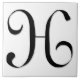The letter H in Geessele style done in black with a white outline on a white background with a slight shadow to give it a three dimensional effect.