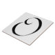 The letter O in Geessele style done in black with a white outline on a white background with a slight shadow to give it a three dimensional effect.