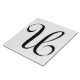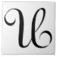 The letter U in Geessele style done in black with a white outline on a white background with a slight shadow to give it a three dimensional effect.