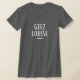 My overall review is that the T-shirt is nice, it fits true to size however the font is significantly smaller than advertised and you can't read it. The printing is unreadable and there is a strain to read it. It does not look like the advertised product. Maybe the shirt color is darker or a larger more visible font should have been used. Photos with and without flash and font is barely legible.