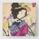 Geisha and Irises Japanese Woodblock Art Ukiyo-e Square Wall Clock