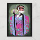 On this colorful postcard, a beautiful fox masquerades as a graceful geisha.