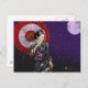 Geisha, Kimono, Red, White, Black, makeup, Obi, Moon, Purple, Parasol, Cherry Blossom Petals, dream, fantasy, hair, makeup
