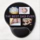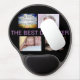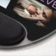 Custom contoured oval mouse pad, gel pad wrist support and non-skid black plastic base.