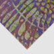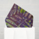 Gelli print stencilled abstract art in greens, purple and gold. This design was created using the gelli plate technique. Artwork and photography by Sandra Foster Designs ©.