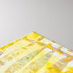 Gelli print stencilled abstract art in yellow with touches of purple. This design was created using the gelli plate technique. Artwork and photography by Sandra Foster Designs ©.