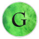 Knob in a gem stone slab pattern - rich lime green jade (jadeite), mottled with deeper emerald green, and a customizable monogram, in a Deco font, with the look of black onyx