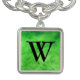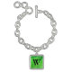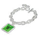 Charm bracelet in a gem stone slab pattern - rich lime green jade (jadeite), mottled with deeper emerald green, and a customizable monogram, in a Deco font, with the look of black onyx
