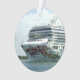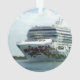 Artwork representing rubies, emeralds, and sapphires adorn the bow of a ship entering the Canaveral Channel as she makes her way to a berth for the day.