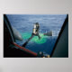 A Navy Frogman leaps from a recovery helicopter into the water to assist in the Gemini XII recovery operations.