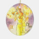 A great illustration for astrological gifts and the zodiac sign Gemini. The star sign is represented by a teenage girl with twin pigtails dressed in a modern yellow sweat suit. Her two gloves have the symbol of Gemini. Symbols of her sign are shown around her: butterflies fluttering, lilly of the valley, with the planet Mercury in the sky. The dominant color is yellow, the official color of Gemini, violet to compliment, and spring green. A traditional watercolor and ink pen painting.