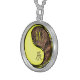 I chose gold plated so that the metal would not react with my skin oils and perspiration. But, I changed the necklace from the gold plated one to a sterling silver. My skin cells will tarnish the silver. But it will not look as bad if some portion of the gold plated necklace somehow became compromised. Zazzle did a find job turning the picture into a pendant for me. As you can see, the colors and the printing of the final product, match the preview. The picture I took is not very clear. But I am pleased with the product I received.