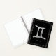 Stylized hammered silver Gemini the Twins astrology zodiac birthday symbol in a hand drawn silver fine double line frame. T A hardcover or softcover notebook with your choice of inside pages. Choose from sketchbook, bullet journal, checklist, graph paper, recipe book, or lines in various widths and colors. Customizable. Aquarius text in a fine script on the front cover can be personalized, text can also be added on the back.