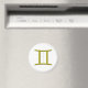 Design features the Gemini zodiac symbol in golden yellow with "gemini" inside.