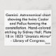 Astronomical chart showing the twins Castor and Pollux forming the constellation. Hand-colored etching by Sidney Hall; Plate 18 in 1825 "Urania's Mirror" - Library of Congress.
