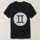 Gemini symbol in black. NB This design can be customized the motif appears as a simple black symbol on light shirts, or as a black symbol in a white circle on dark shirts.