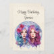 Birthday card for Gemini featuring a digitally created image. The greeting can be changed, including substituting a name for the zodiac sign. AI assisted graphic purchased with commercial use. Artwork: CosmicMeta