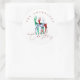 Hand-painted watercolor crystal reindeer in three gemstone varieties - ruby, emerald & blue topaz - adorn this modern elegant Christmas holiday sticker in classic white