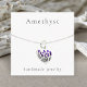 Showcase your amethyst gemstone necklace with this jewelry display card. Birthstone necklaces are unique, fun gifts to give as a birthday present. Gemstones are also well suited gifts for other occasions such as graduations, mother's days, and wedding events. You can update the text to provide your website and other details.