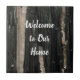 This decorative tile offers a unique way to welcome guests to your home. This tile features a photo of a black and white striped gemstone. This gem displays white crystals and black stone that come together to form the stripe pattern. "Welcome to our home" appears in white font in the center of this tile and can easily be customized if you desire.