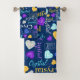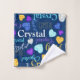 Cute originally designed text name personalized towel set. Diamond, sapphire blue and honey topaz, amethyst purple and aquamarine with typographical text towel set. Customized with your own name, currently reads Crystal. Other names available or contact me for name requests. Original watercolor gemstone art and design by Sarah Trett for www.mylittleeden.com