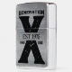 Black on Chrome silver generation x zippo lighter features large black distressed X with personalized year in center of the X. Celebrating the best Generation X 1965 - 1980. Simply click on the "PERSONALIZE" button to begin editing.