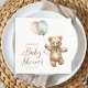 Gender Neutral Bearly Wait Teddy Bear Baby Shower Napkins features an adorable watercolor illustration of a teddy bear holding pink and blue balloons.