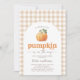 Celebrate the arrival of a little one with this pumpkin themed baby shower invitation.