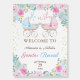 Watercolor floral elegant , boho pink and blue carriage themed gender reveal baby shower welcome sign. Don't forget to discover full collection.