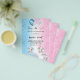 For a gender reveal baby shower. A blue white and pink gradient background. Decorated with glitter and blue, pink and white balloons and glitter dust. A baby boy elephant and a gaby girl elephant. Personalize and add the names of parents to-be and party details. The name and the text: Boy or Girl are written with a hand lettered style script.