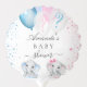 For a gender reveal party/baby shower. A white background with blue and pink faux glitter dust, balloons and two elephant babies in blue and pink. Personalize and add the name of the mom-to-be. The name is written with a modern hand lettered style script.