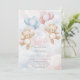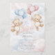 He or She? What will baby be? Pink and Blue clouds with cute teddy bears with pink and blue balloons.