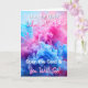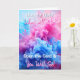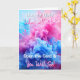Cute gender reveal card for family and friends. What will it be? A boy or a girl? Pink or blue smoke on the front. Inside is It's a boy and blue footprints.