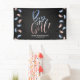 Gender Reveal night party decoration dark banner with pink and blue footprints. Boy or girl modern calligraphy sign on black background. Visit the shop to see all the collection!