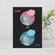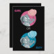 Is it a boy or a girl? Invite your friends and family with these personalized invitations for gender reveal party with illustration of cute little elephants holding pink and blue air balloons, on black background. Design by Maxi Harmony