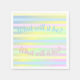 Pretty matching napkins for my gender reveal collection. In stripes of pastel pink, green, blue, yellow and green. Says "what will it be?"