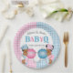 Gender Reveal Pink Blue Gingham Baby Q BBQ Paper Plates