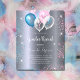 For a gender reveal baby shower. A faux silver metallic looking background. Decorated with glitter and blue, pink and white balloons and blue and pink faux glitter dust. Personalize and add the name of the mom to-be and party details. The name and the text: Gender Reveal are written with a hand lettered style script